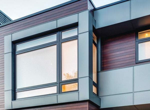 Aluminum panels are a vertical siding option commonly used in modern and contemporary designs. These panels are available in larger formats and create a sleek, architectural appearance. Vertical aluminum panel siding is often used for full walls or as accent features to add visual interest and contrast.