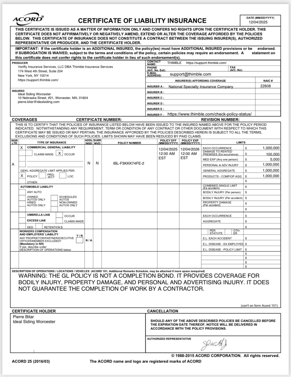 Ideal Siding® Worcester